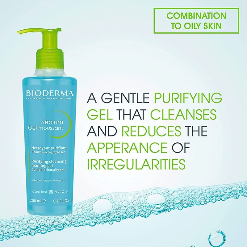 | Features | Bioderma Sébium Gel Moussant is suitable for cleansing combinations to oily skin and has a gentle but deep purifying action. This foaming gel eliminates excess sebum and purifies the epidermis. Its ultra-gentle formula respects the cutaneous balance. Non-drying, soap-free. Non-comedogenic. It has an excellent tolerance on the facial skin, including the eye contour area. |