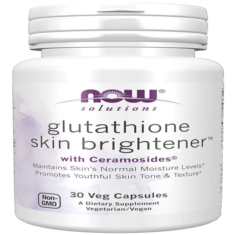NOW® Solutions Glutathione Skin Brightener™ combines two clinically validated ingredients—Glutathione and Ceramosides®—to support brighter, hydrated, and youthful-looking skin from within. Glutathione helps maintain normal skin pigment expression for a radiant and even tone, while Ceramosides® (rich in phytoceramides) deeply moisturize and enhance skin elasticity for a smooth, glowing complexion.